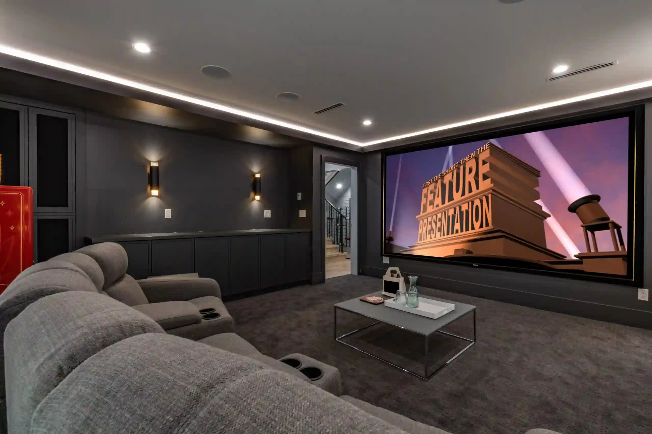 Integração de som ambiente, home theater e telões com imagem superior, criando experiências imersivas e salas de cinema em casa.